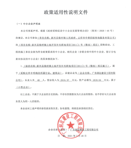 新興縣稔村鎮土地開發補充耕地項目[2011]1號(整改)項目中標(成交)結果公告